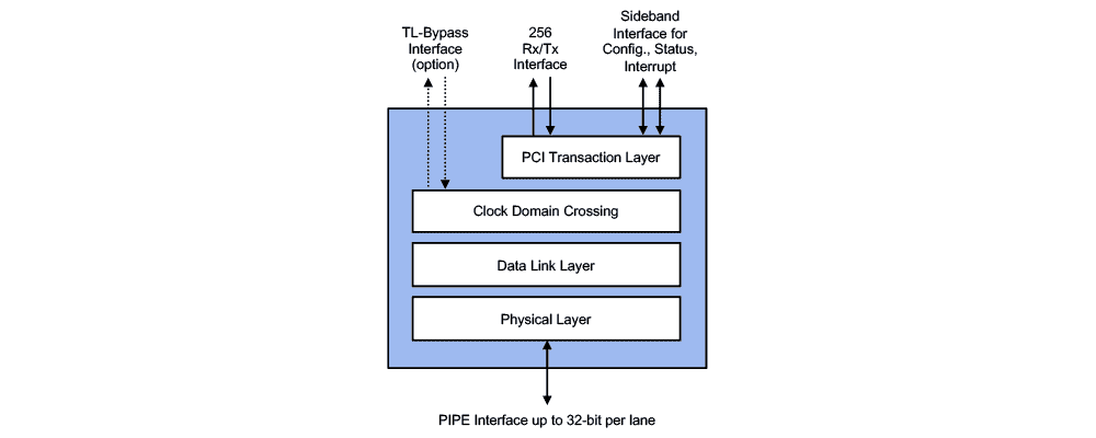 - Optional Transaction Layer bypass allows for customer specific transaction layer and application layer