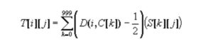 3. A differential average trace T[0…63][0…99999] is constructed from the data set S using the results of the function D. In particular:
