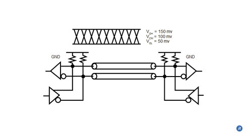VLSD signals are point-to-point and use an ultra-low 100mV signal swing (50 to 150mV) and 100mV common-mode voltage, which results in a 200mV peak-to-peak differential signal swing. This swing is less than 1/10th the signaling swing of commodity memory interfaces. VLSD enables high data rates with very low IO power consumption.